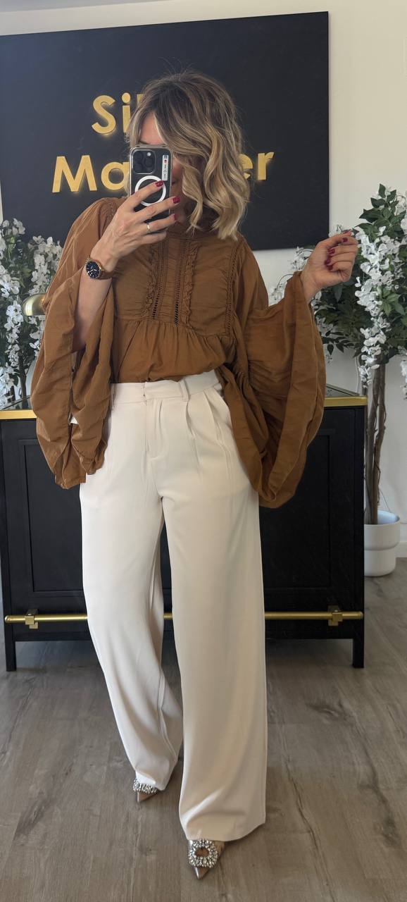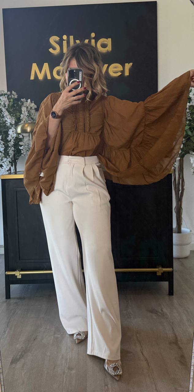Camisa Blanca. Talla única. Modelo mide 160 cm y pesa 50 kg.
